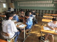 2回目の新体力テストが、先週の木曜日から始まりました。春に実施した新体力テストの結果は、県の平均値と比較して概ね良好であったものの、1,3年生男子が「握力」「長座体前屈」「ボール投げ」で、1年生女子が「握力」で,県平均値を下回りました。この1年間は、体育の授業を中心に、「握力」「長座体前屈」「ボール投げ」が課題であることを踏まえつつ、総合的な体力向上を図ってきました。その検証としての2回目の新体力テストを本校独自に設定し、1,2年生を対象に実施します。先週の木曜日は、1年生が校庭で「ボール投げ」「立ち幅とび」の練習と計測を行いました。