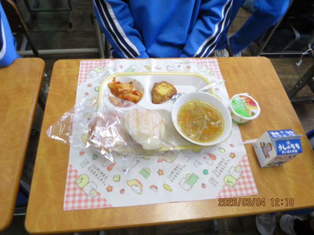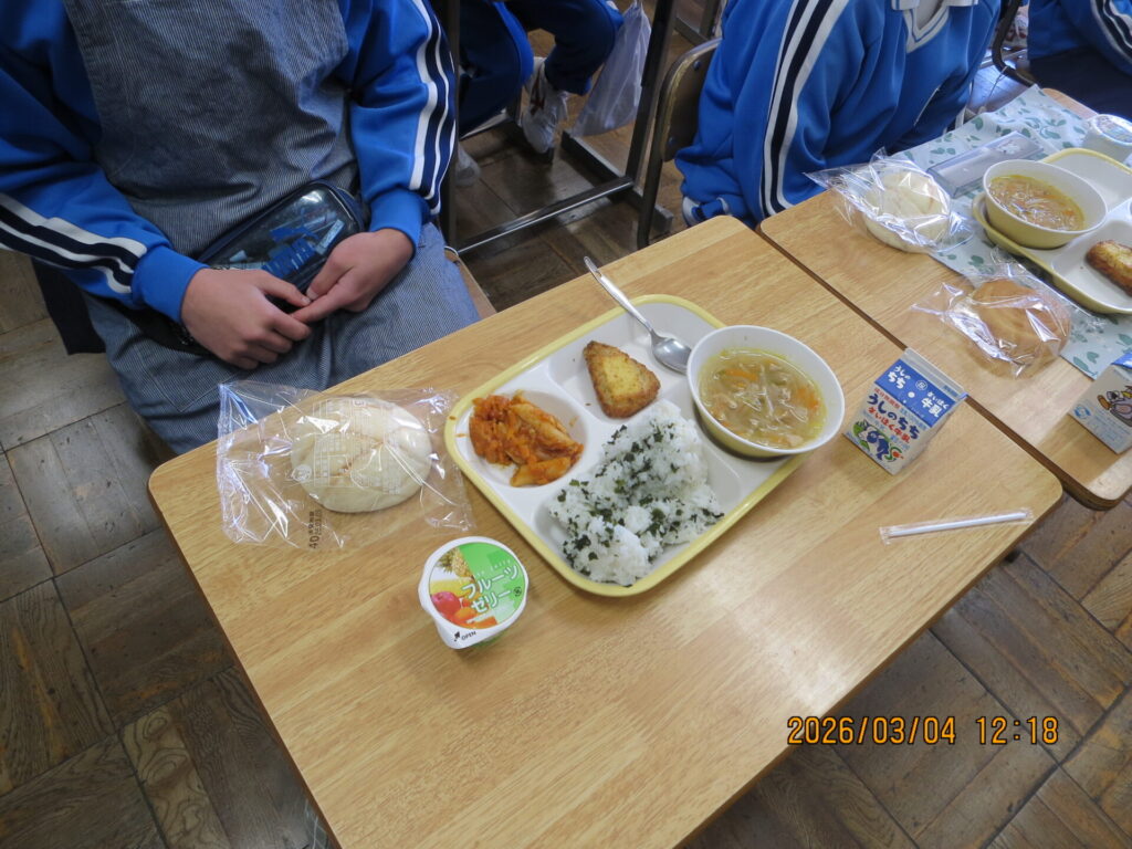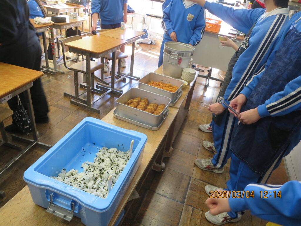 セレクト給食 2026年3月4日 最終更新日時 : 2026年3月4日 kumagaya_edit 3年生が選べるメニューの中から給食を選び、好みのものを食す一大イベント、セレクト給食の日でした。最上級生に許されたご褒美として各学級大盛り上がりです。たくさんの笑顔であふれていました。