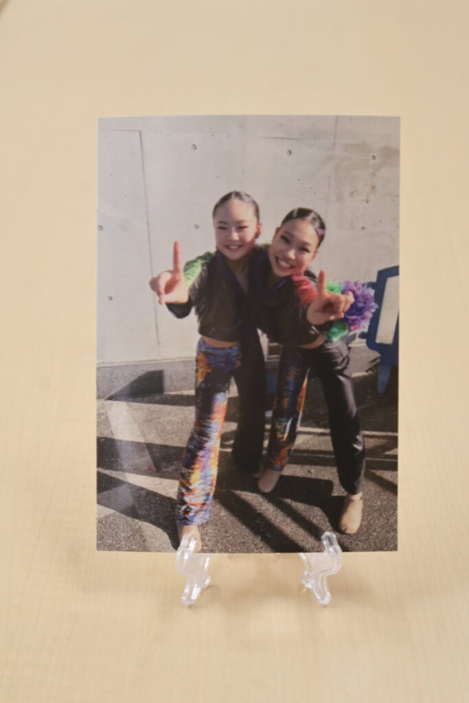 このチームに所属している、本校2年生の小松さんと松川さんからお話をきく機会がありました。1年前にも2人からお話を聞いていますが、一段と成長したように感じます。小松さんは現在、チームのサブキャプテンを務めているそうです。自分自身の演技に対するプレッシャーはもちろんあるけれど、それ以上にチーム全体のことを優先して考えることができるようになってきたとお話してくれました。松川さんは、前回はチームの新メンバーだったそうです。2年目になって、周りの人に任せるのではなく、逆に周りの人を助けてあげられるようにしていると言います。新メンバーの仲間の気持ちもわかるので、自分の経験を踏まえてアドバイスなども積極的にしているそうです。