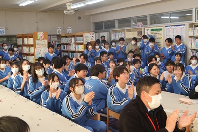 ビブリオバトルとは、参加者が自分の好きな本を紹介し合い、最も読みたくなった本を投票で決定する書評ゲームです。3名は自分の選んだ本の魅力を、5分間の持ち時間の中で存分に語りました。聞き手を引き付ける話の構成や言葉選びがありました。3人が紹介してくれた本「二人一組になってください」「金持ち父さん貧乏父さん」「一次元の挿し木」はどれも読んでみたくなりました。