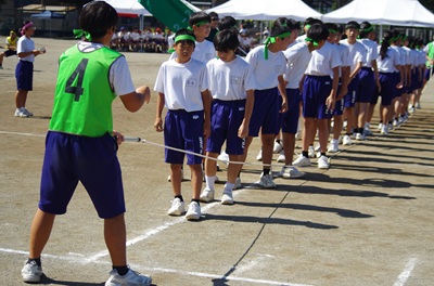 体育祭③ 2025年10月2日 最終更新日時 : 2025年10月2日 kumagaya_edit 午前中最後の種目は「みんなでジャンプ!」でした。この種目は特に学級の団結力が必要です。学年が上がるにつれて跳ぶ回数も増えてきます。練習を重ねてきたことがよくわかります。午後の種目は、予定通りの時間に開始します。