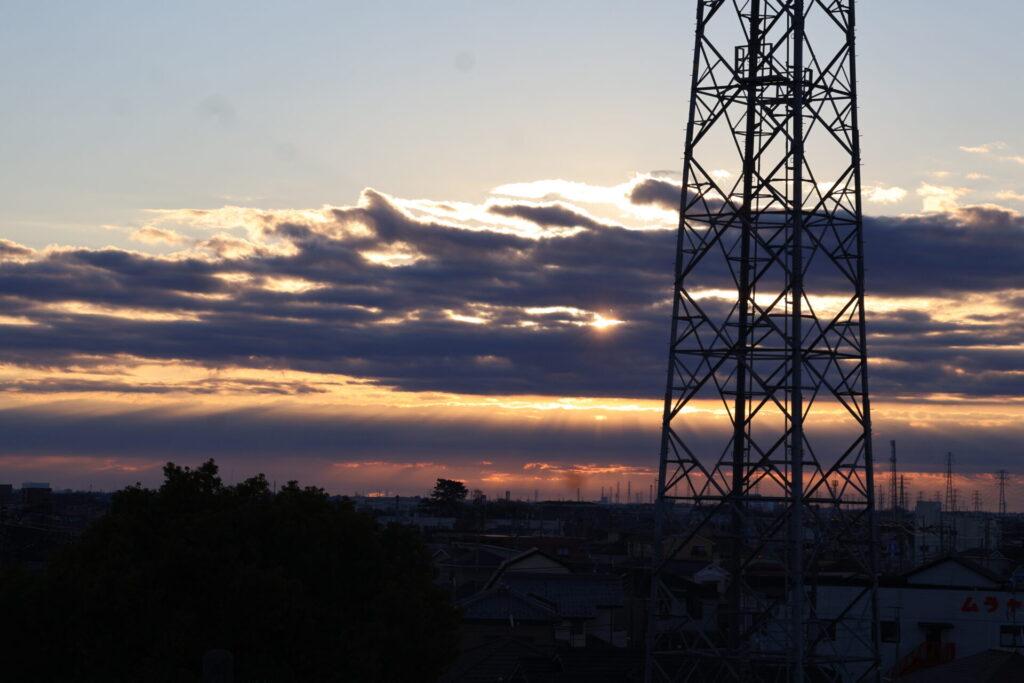 新年あけましておめでとうございます。昨年同様、富士見中の校舎から初日の出を拝みたいと考え、4階のベランダで待ち構えていました。残念ながら、予定時刻には雲があつく、地平線から太陽が上がってくる様子をみることはできませんでしたが、30分後くらいには、東の空が茜(あかね)色に染まり、太陽を確認することもできました。とてもきれいです。熊谷市にご縁のある俳人の金子兜太先生のご著書「365日で味わう 美しい日本の季語」(誠文堂新光社)の「1月1日」のページには、次のような記述があります。