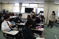 調査には、私も同行しました。午前中は、都庁内の「子供政策連携室」でした。2年6組・3班のテーマは「子供政策」です。担当の方から、中高生の提言をもとに実現した職場体験事業のお話を聞きました。午後は、2年2組・1班とともに港区に社屋を構える「長谷工」を訪問しました。まずは、1班が熊谷市に提言したい「太陽光パネル」についてプレゼンしたのちに、多くのご助言をいただきました。またご担当者様からは、会社が実施している環境保全活動についてもたくさんのことを教えていただきました。こういう機会でなければ実現できない貴重な学びでした。スローガン「青学年 協力と探究で切り拓く明日-東京で学び、熊谷の未来へ-」を引き続き掲げ、東京校外学習で学んだことを次の学習や学校生活につなげることを大いに期待しています。