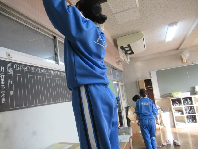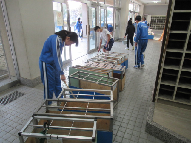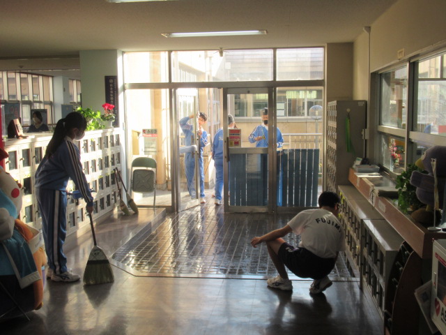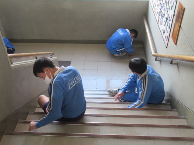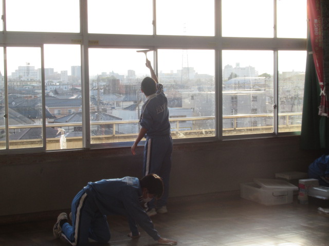 本日午後、大掃除を全校で行いました。今まで使用した教室、廊下、階段、トイレ等を生徒と教員が一緒になって掃除しました。その後、美化委員の生徒がワックスがけをしてくれました。ありがとうございました。今年の授業日はあと1日、しっかり締めくくる準備はできました。