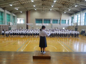 硬式テニスの種目から、本校の学校総合体育大会が始まりました。さくら運動公園テニスコートで開催された大里地区予選会に、本校から出場したのは2名の選手です。2名とも練習の成果を発揮し、健闘しました。女子シングルスの佐藤さん(2年生)は見事優勝し、県大会出場を決めました。