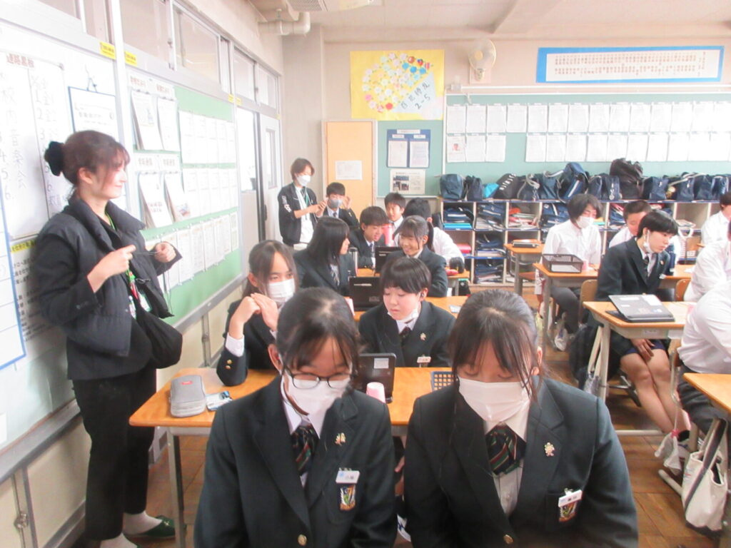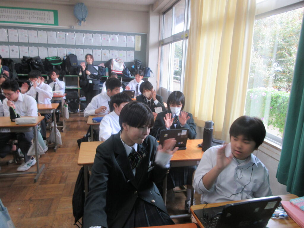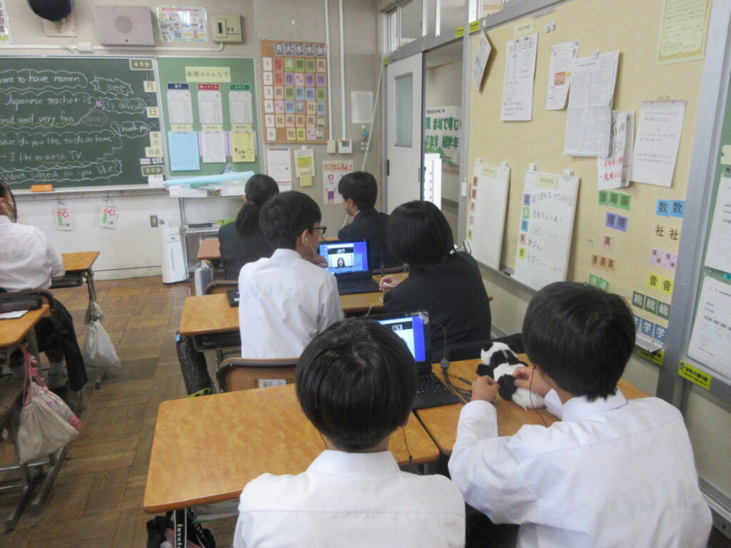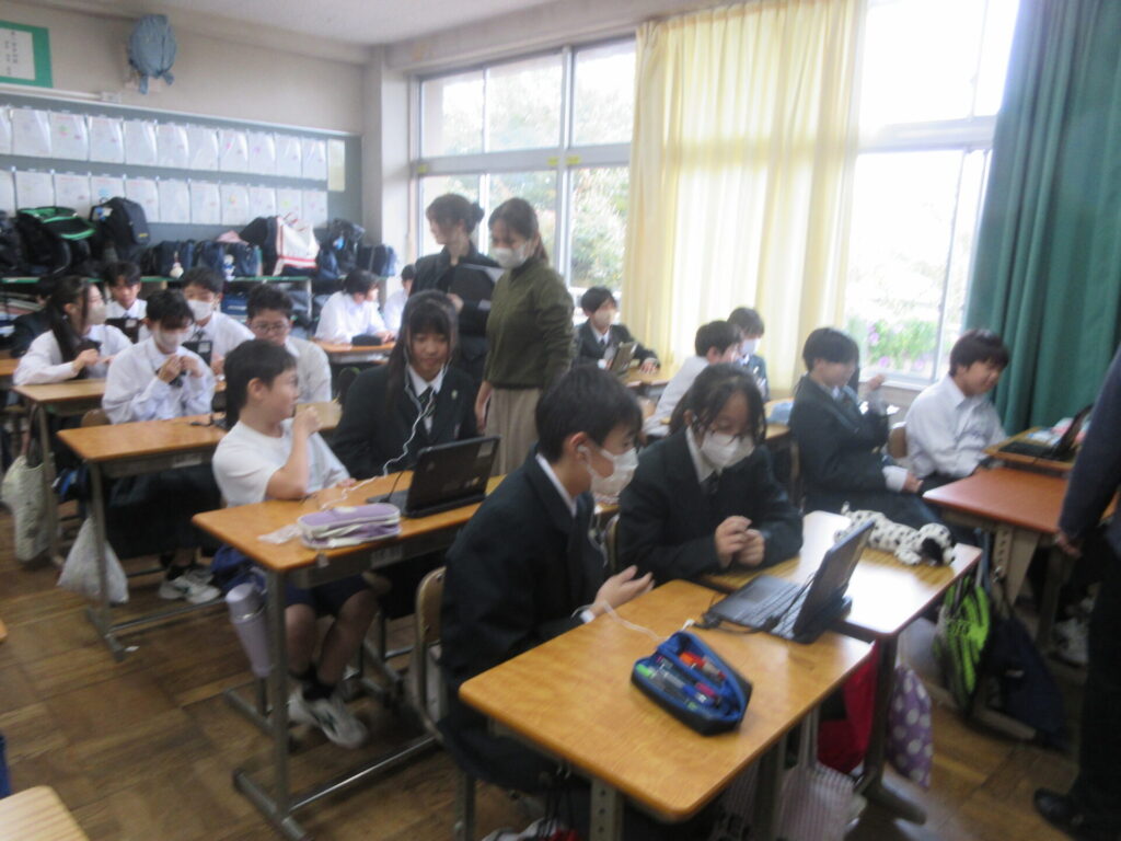 本日、1年4組、2年5組でOBLがありました。OBLとは、今までの英語の授業等で練習した英語表現をオンライン上のはじめて会う外国の方々に試してみるという活動です。実生活に可能な限り近づけた活動となっています。生徒たちは、仲間と協力しながら、楽しく英語活動に取り組んでいました。