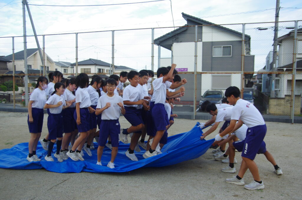 放課後の時間を利用し、体育祭練習を行いました。縦割り種目の、ダンシング玉入れ、ランニング綱引き、ジャンピング絨毯、選抜リレーをそれぞれのチームに分かれ、競技を行ったり、整列の仕方を確認したりしました。選抜リレーは、実際の競技に近い形で行いました。残り少ない時間ですが、どの種目に出る選手も頑張ってほしいと思います。