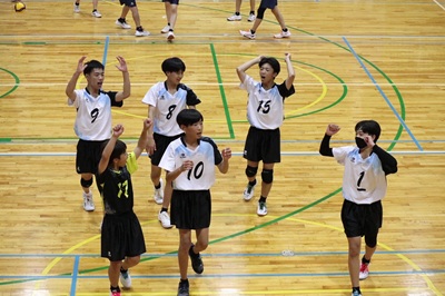 新人体育大会の予選会では、どの種目どの会場でも多くの保護者の方に応援をいただいています。生徒の励みになります。引き続きよろしくお願いいたします。大会初日のリーグ戦に臨んだ男子バレー部の保護者の方から写真の提供がありました。ありがとうございました。