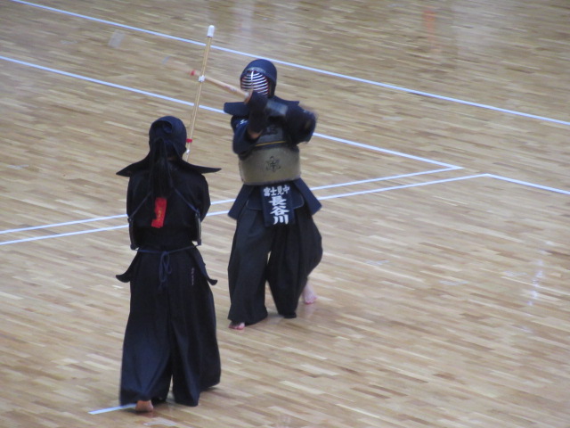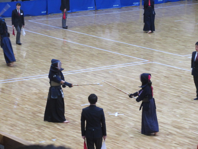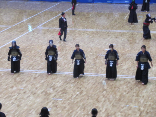 本日、剣道部女子団体の新人戦県大会が上尾市にある埼玉県立武道館で行われました。1回戦はシードで、2回戦からの試合となりました。2回戦、3回戦と勝利したチームは、ベスト8まで進みました。準々決勝では惜敗となりましたが、生徒たちは日ごろの稽古の成果を十分に発揮しました。