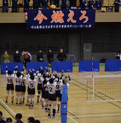新人戦県大会(女子バレー②) 2025年11月12日 最終更新日時 : 2025年11月13日 kumagaya_edit 本日は、新人体育大会県大会の2日目です。本校女子バレー部は2試合を勝ち上がり、ベスト4に進出しました。14日(金)には、川越市民体育館で行われる準決勝・決勝に臨みます。応援しています。頑張れ富士見中!