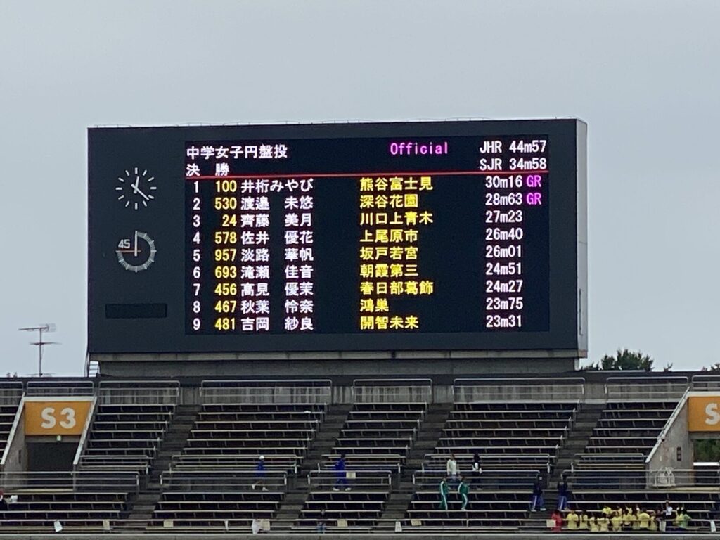 新人戦県大会(陸上競技②) 2025年10月9日 最終更新日時 : 2025年10月9日 kumagaya_edit 本日は昨日に引き続き、陸上競技の新人体育大会・県大会でした。2日目も選手は自己記録の更新を目指し、頑張りました。その中でも、女子円盤投げの井桁さんが、県大会の新記録を更新しての優勝でした。快挙です。おめでとうございます。