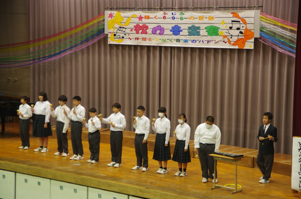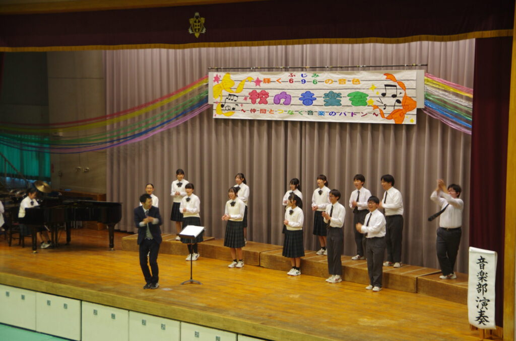 午後は、7~11組のハンドベル、音楽部、吹奏楽部の発表がありました。閉会式では、特別審査員の熊谷高校・蓮先生から「どの学級の歌にもしっかり感情がありました」というご講評をいただきました。音楽会スローガン「輝く696(ふじみ)の音色~仲間とつなぐ音楽のバトン~」を実現することができたと思います。