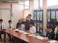 この件に関しての「校則検討委員会」は10月27日に開催し、生徒の側からは生徒会本部役員、各学年委員長、部長会長、生活委員長が出席しました。PTA会長様にもご出席をいただきました。全校生徒へのアンケート結果などを踏まえた提案は、第79期生徒会長の櫻井さんが行いました。その後の協議は実に活発でした。私が本校の「校則検討委員会」に出席したのははじめてのことでしたが、想定をはるかに超えて活発でした。活発なだけではなく、どの意見も建設的で、しかも多角的です。差し色のこと、金額のこと、周知の仕方など…意見を出し合って、まとめることができていました。本当にすばらしいと思います。