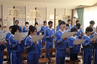 校歌合唱隊 2026年1月9日 最終更新日時 : 2026年1月9日 kumagaya_edit 本日の昼休みと放課後、第一音楽室では2年生の「校歌合唱隊」が練習に励んでいました。来週開催する「新入生説明会」で校歌を披露するための練習です。すばらしい歌声でした。本番が楽しみです。