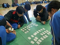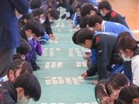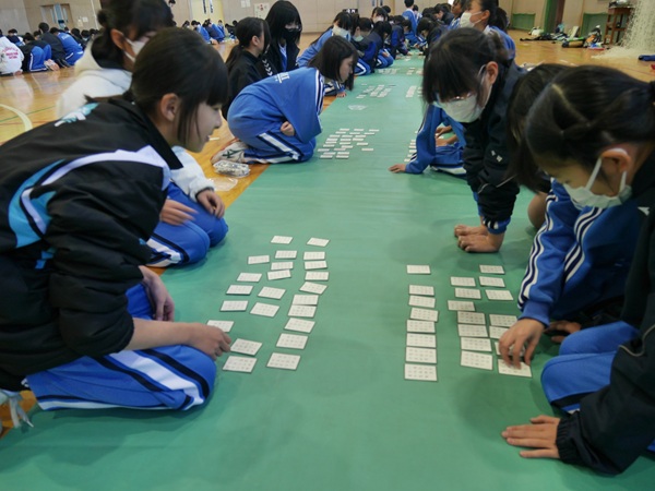 百人一首大会 2026年1月22日 最終更新日時 : 2026年1月22日 kumagaya_edit 昨日、1年生が百人一首大会(1日目)を行いました。百人一首を覚えることが冬休みの宿題の一つでした。その成果を生かすことができたでしょうか。源平戦によるクラス対抗です。大変盛り上がっていました。明日の5時間目が、大会2日目です。