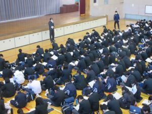 生徒会本部役員の立候補者による立会演説会と、選出選挙が行われました。立候補した候補者は、自分が本部役員になった時の想いを全校生徒に向けて立派に述べていました。もちろん、当選、落選はありますが、志はぜひ胸に秘め、校長先生のお話にもあった「学校のためにあなたはなにができるのか」を大切にし、学校のリーダーとしてどの立場でも頑張ってほしいと思います。