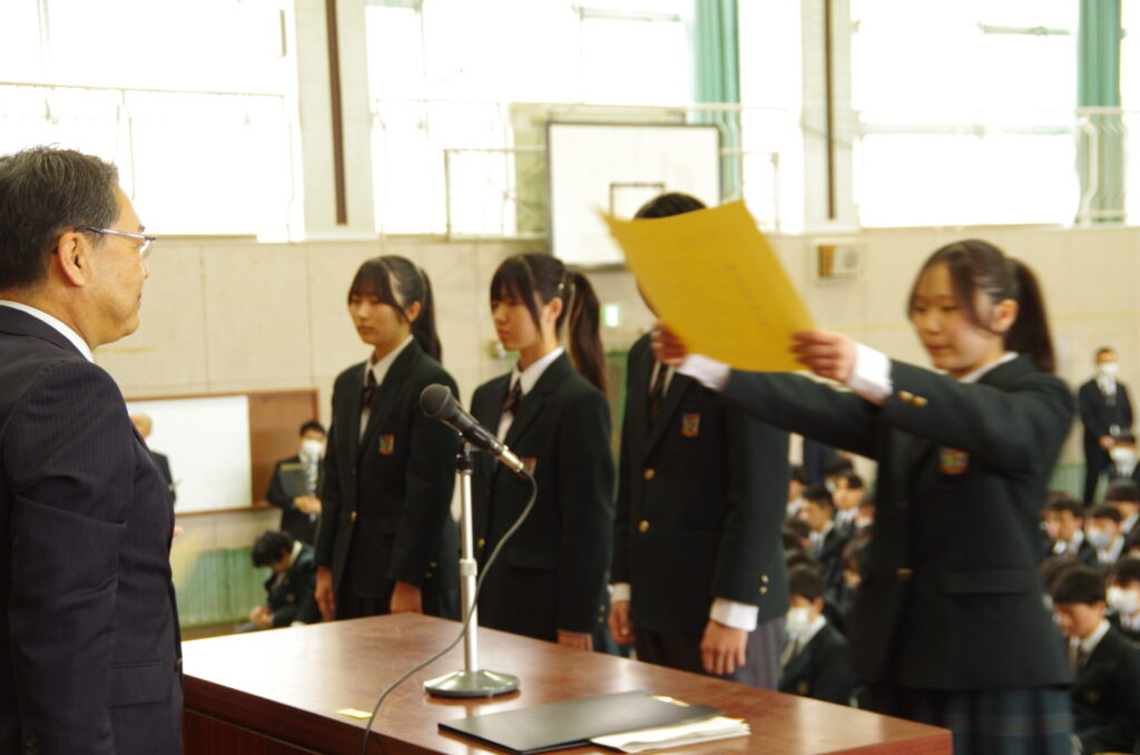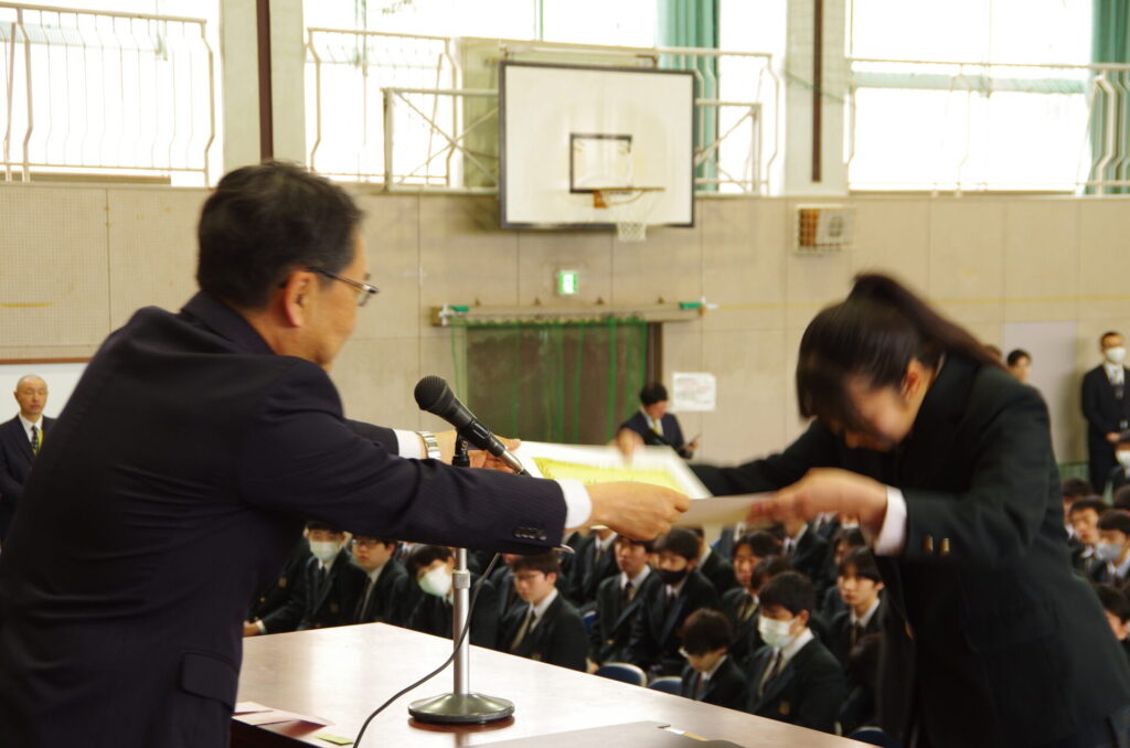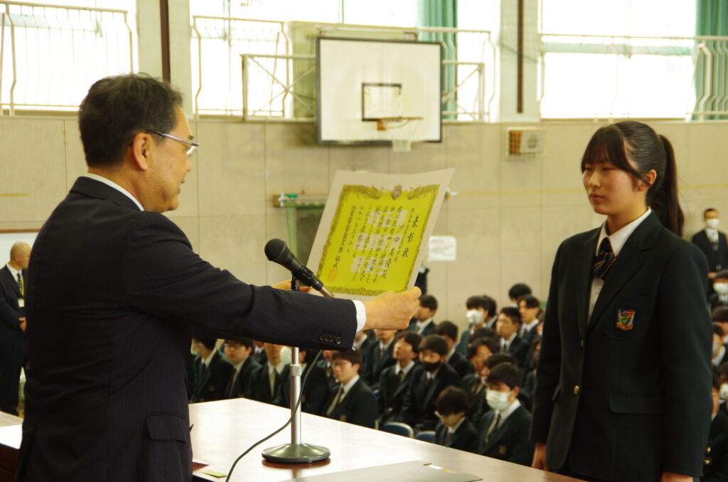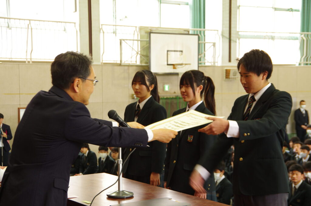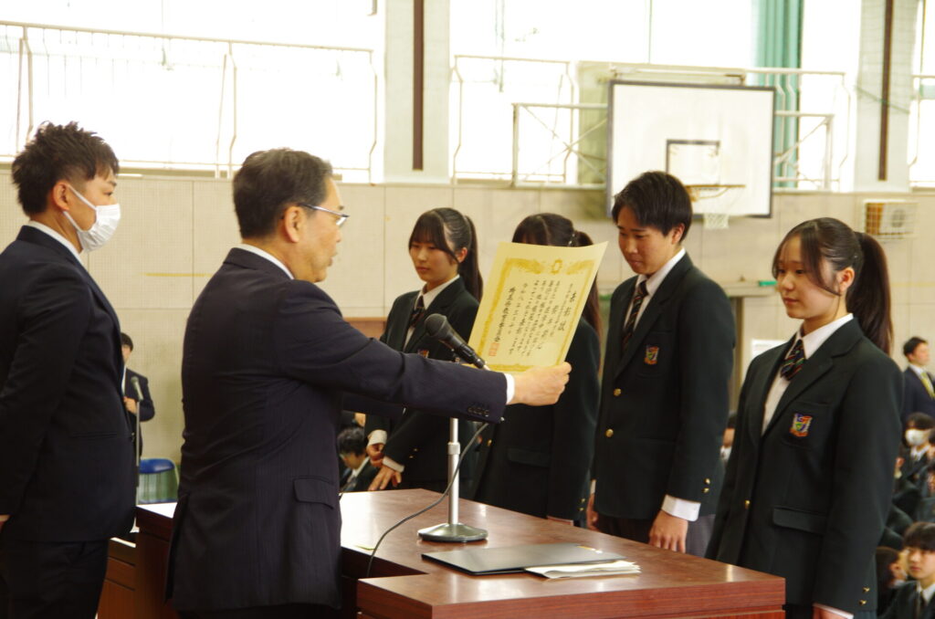 表彰集会 2026年3月10日 最終更新日時 : 2026年3月10日 kumagaya_edit 本日、卒業式予行後、3年生該当生徒の表彰集会を行いました。学業善行優良生徒1名、体育優良児童生徒2名、産業教育振興会優良卒業生1名を表彰しました。