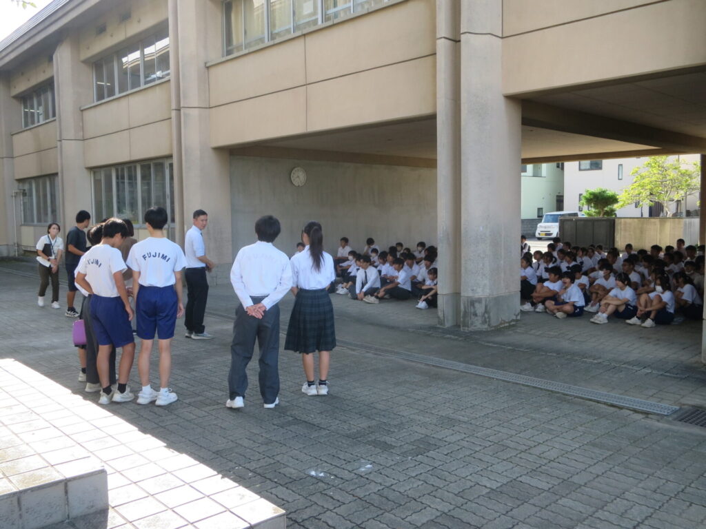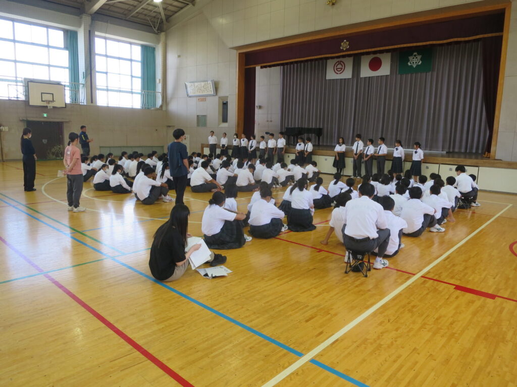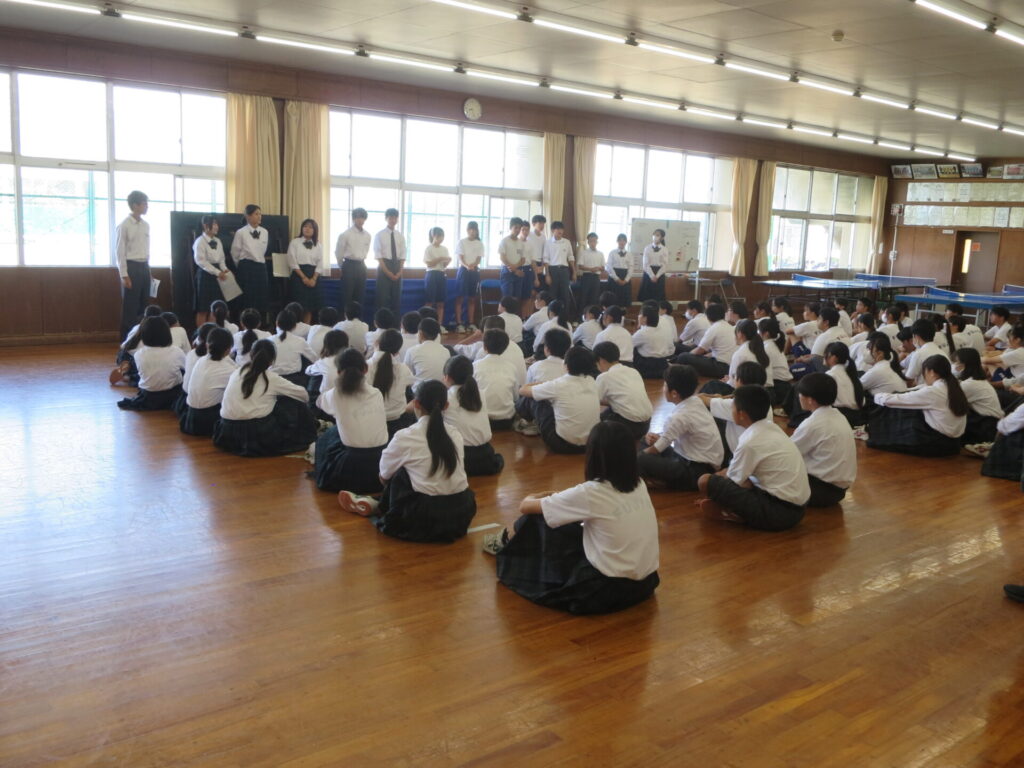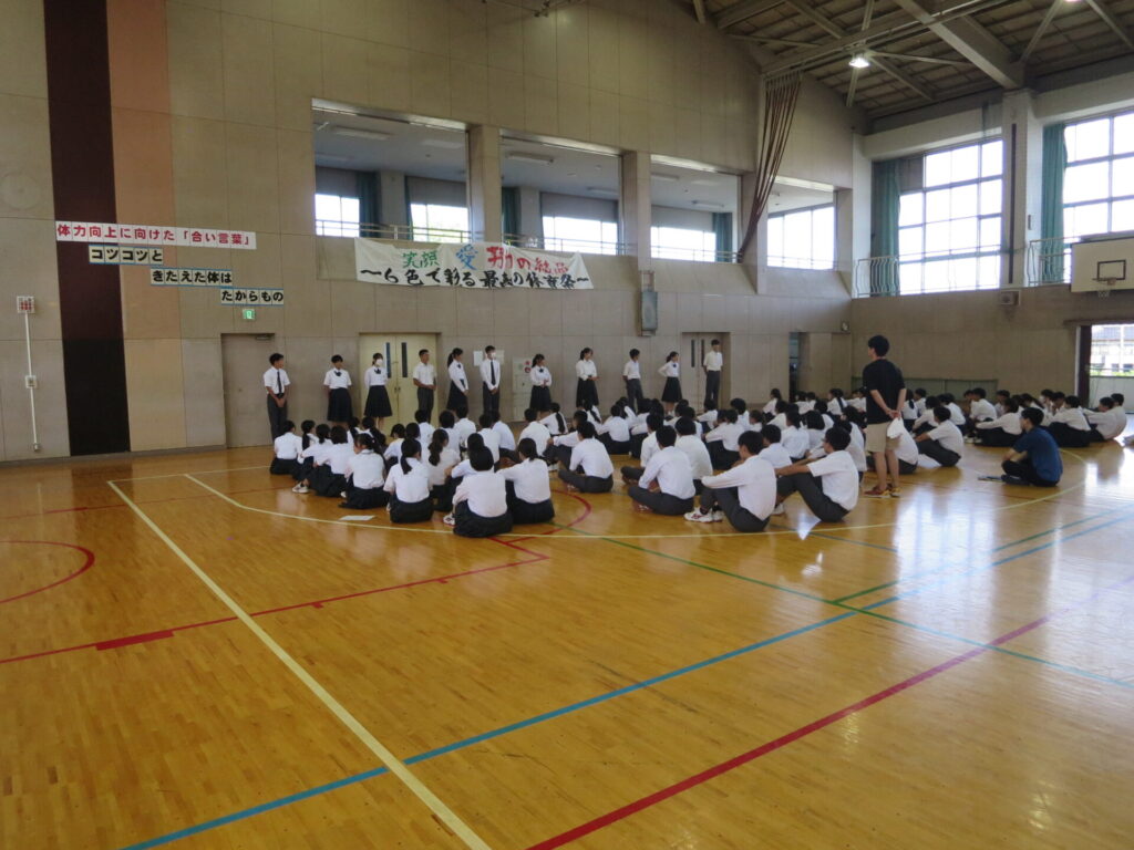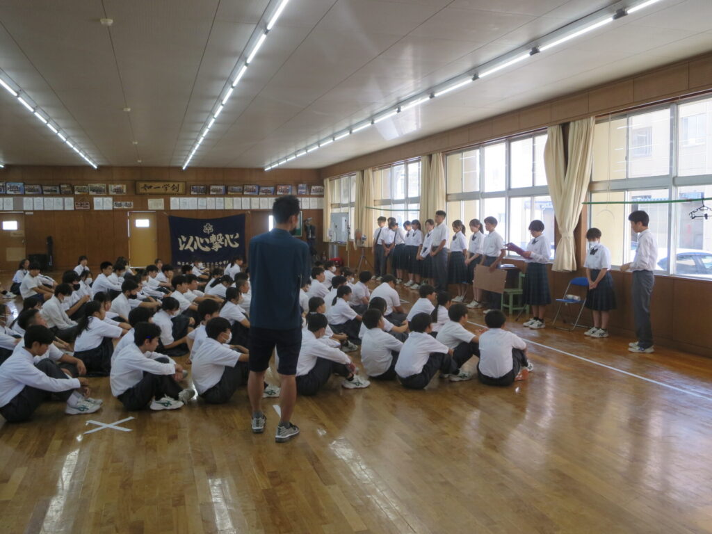 体育祭が終わり、縦割り団の解団式を行いました。各団の体育委員さんが、団の中での協力に対し、感謝を述べたり、大成功だったという声も聞こえてきました。同じ学年、クラス以外の人の活躍を心から応援する機会は大変貴重です。学校全体の絆が行事を通して確実に深まることができました。