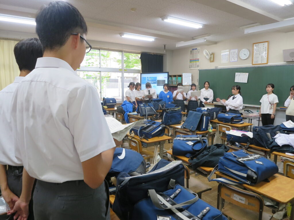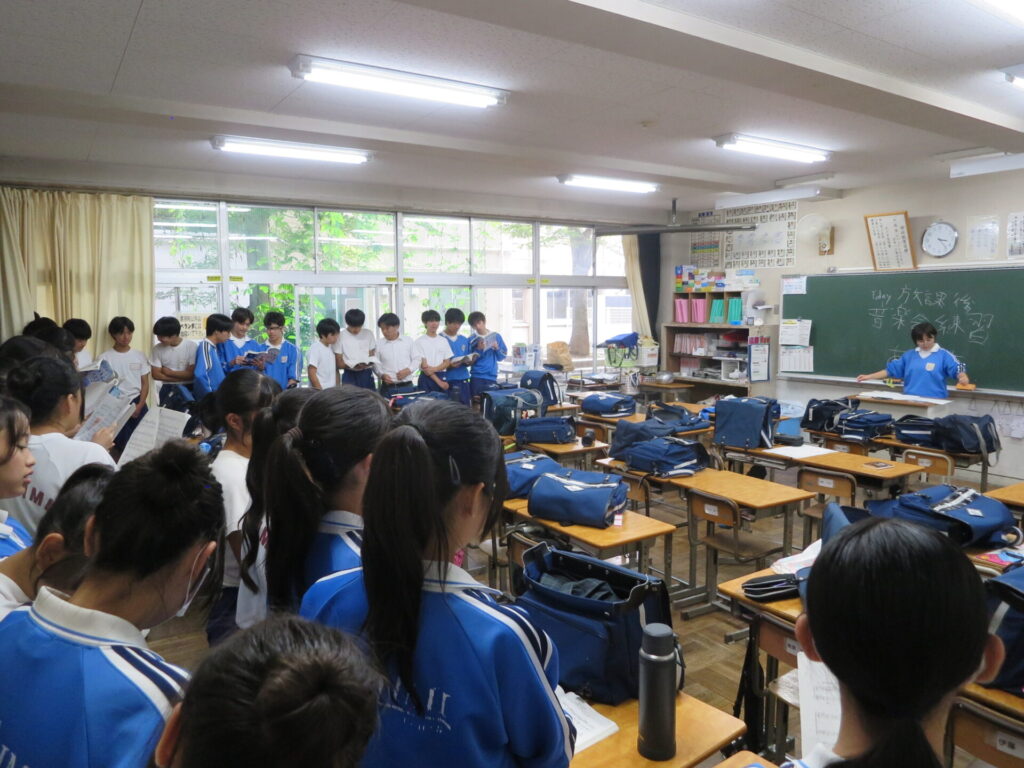 体育祭の熱が冷めきらぬ富士見中学校ですが、今度は合唱の熱で熱くなってきています。10月6日から、帰りの会の時間を利用し、学級での歌練習が始まりました。どのクラスもクラス曲を一生懸命練習している姿が見受けられます。人を感動させるものをクラスで作ることができるまたとない機会です。楽しみ、励み、そしてクラスを深めてほしいと思います。10月30日が楽しみです。