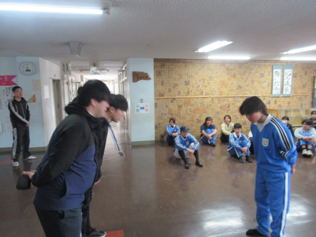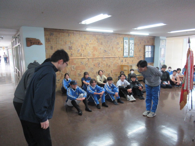 (前略)本日、新顧問となる先生方とお会いできることをとても楽しみにしていました。私は部活動を技術を高める場であるとともに、仲間との協力や礼儀、努力する大切さを学べる場でもあると考えています。私たち部長会としても、先生方と協力しながら、よりよい部活動づくりに努めていきたいと思います。私たち3年生は、部活動に参加できる時間は限られていますが、先生方のご指導のもと、良い結果を残せるように頑張っていきたいです。(後略)