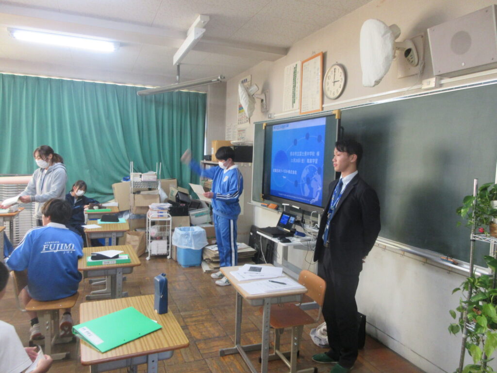本日、本校1年生において、勤労観等を育成する機会として「なるには学習会」を実施しました。9名の方をお招きし、生徒たちが8つの職業の教室に分かれ、お話を伺いました。その職業に「なるには」どうしたらいいか、必要な資格、どこでどんなことを学んでおくとよいか等を生徒たちは興味津々で聞いていました。