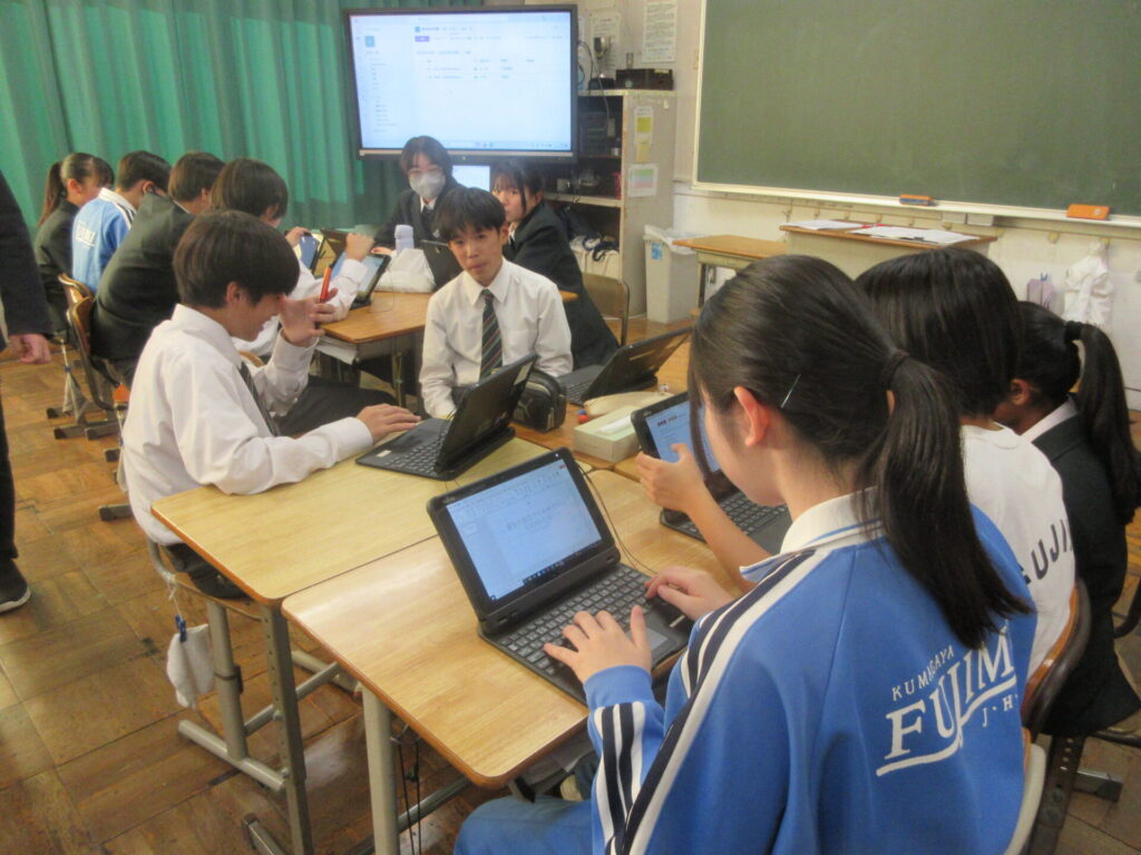 12月5日(金)に2年生は東京校外学習(上野・東京方面)に行きます。本日は、その目的や計画の立て方等を学年で共有した後、実際に計画をグループで立ててみるという活動を行いました。「仲間と協力し、ルールやマナーを守って行動する。」、「東京の工夫や取組を見つけて、熊谷市との違いから考察する。というねらいのために取り組んでいました。