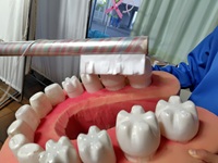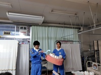 来週は「いい歯の日 健康習慣」です。学校では月曜日と火曜日に、保健委員会主催の「歯みがきバトル」を実施します。また、学区内4つの小学校(4年生が対象)への「出前歯みがき教室」も実施予定です(下の写真は「出前歯みがき教室」に向けて練習している様子です)。保健委員会も頑張っています。全校で、むし歯予防の意識を高めていきましょう。