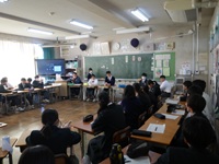2年生の教室でも、大変意欲的に授業に取り組む生徒の姿をみることができました。発表が活発で、楽しそうに授業に参加しています。友達と教え合い、学び合う様子もみられました。