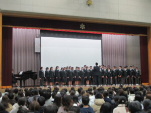 本日、本校体育館で令和8年度新入生説明会が行われました。全体会の前に、本校の校歌合唱隊による校歌紹介をしました。校長、PTA会長挨拶後、保健関係や制服等について説明を行いました。その後、保護者と児童に分かれ、保護者の方に […]